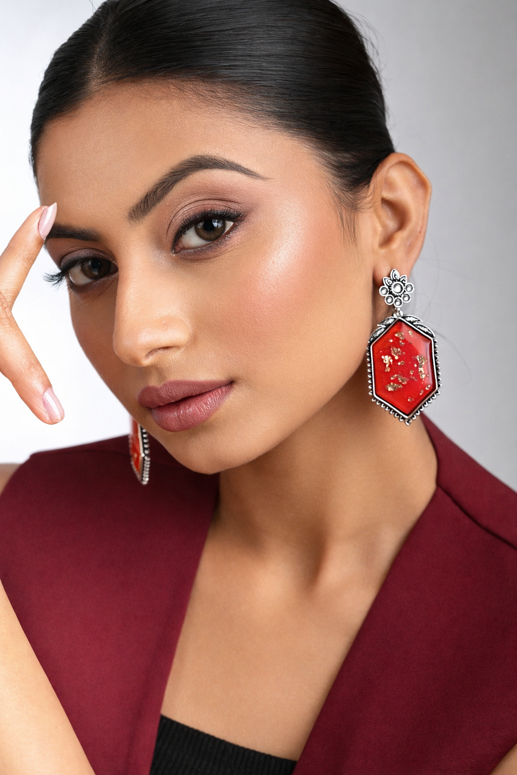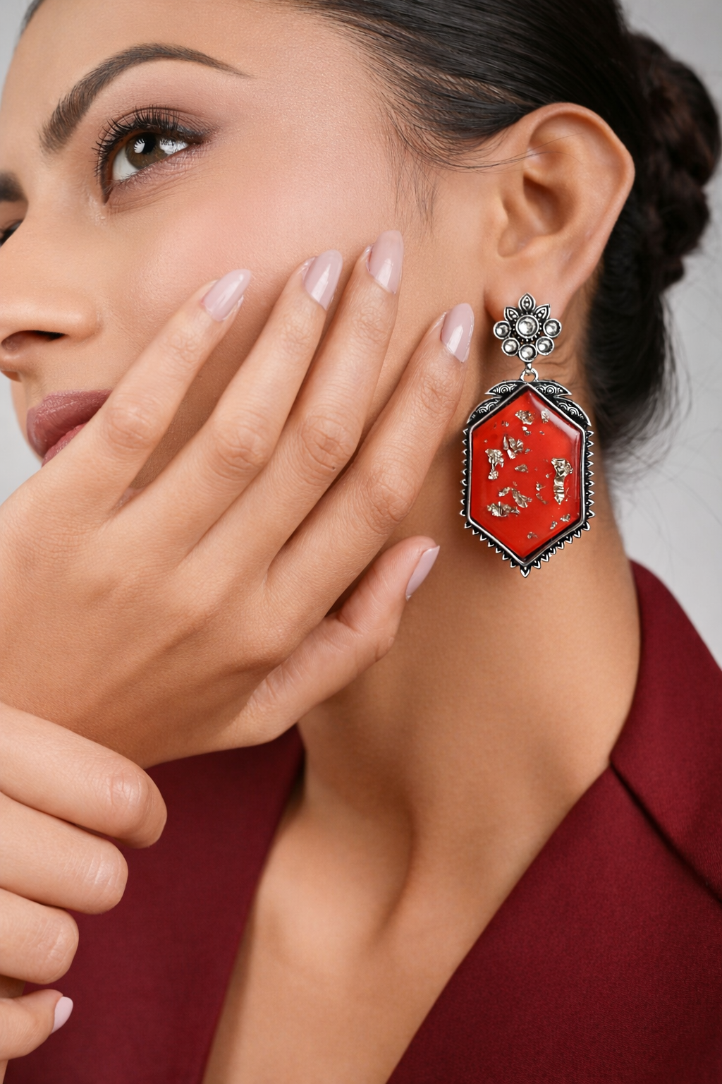 Be the first to review “Oxidized Silver Red Stone Statement Earrings”
